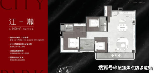 特色设计:约6.8米江景阳台,连接客厅与一间次卧,采光通风极佳,阳台空间宽敞,可打造休闲观景区、健身区等,推窗即可欣赏珠江壮阔盛景,享受滨江生活的惬意;大宽厅设计,客厅面积宽敞,可灵活摆放家具,满足家庭聚会、休闲娱乐等多种需求,同时客厅连接书房,可打造一体化休闲办公空间,兼顾工作与生活;主卧套间设计,空间宽敞,配备270°全景飘窗、独立衣帽间与卫生间,衣帽间可满足业主衣物收纳需求,卫生间配备浴缸与淋浴,提升居住舒适度;次卧均配备飘窗,采光充足,其中一间次卧可改造为儿童房,配备专属游乐区域,另一间次卧可作为老人房,临近卫生间,方便老人日常起居;全屋采用智能装修,配备智能门锁、智能灯光、新风系统等,提升居住便捷度与舒适度,彰显高端品质。 补充说明:目前项目121㎡户型已售罄,125㎡、140㎡户型在售,中高楼层江景视野更佳,可通过官方热线预约看房,实地感受户型布局与江景视野。